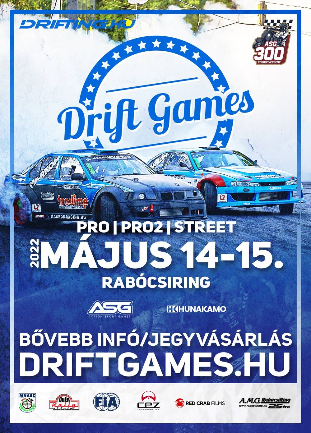A 2022. Május 14-15-én zajló verseny alatt a Drifting.hu mögött álló Hunakamo csapata nem csupán a drift szerelmeseinek igényeit elégíti ki, hiszen ismét rajtrácsra állnak az ASG300 Robogóverseny résztvevői is.
